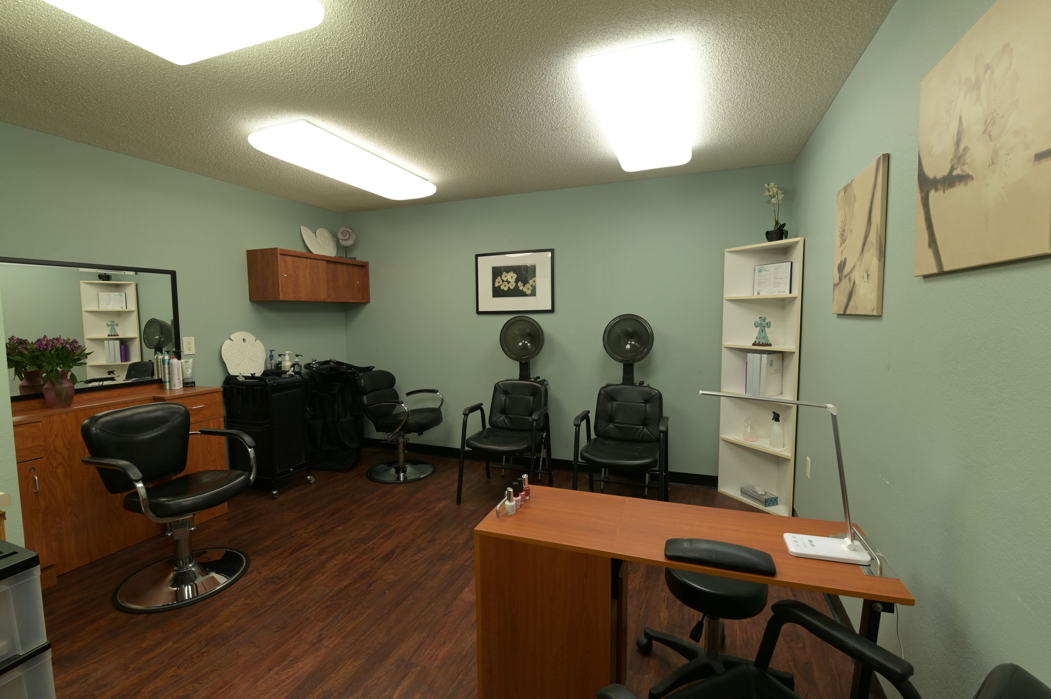 Personal health and wellness go beyond sweating in a gym. While we do offer onsite fitness programs, we also have a beauty salon/barber shop on-site as well as a spa room and massage room to keep you looking and feeling your best.